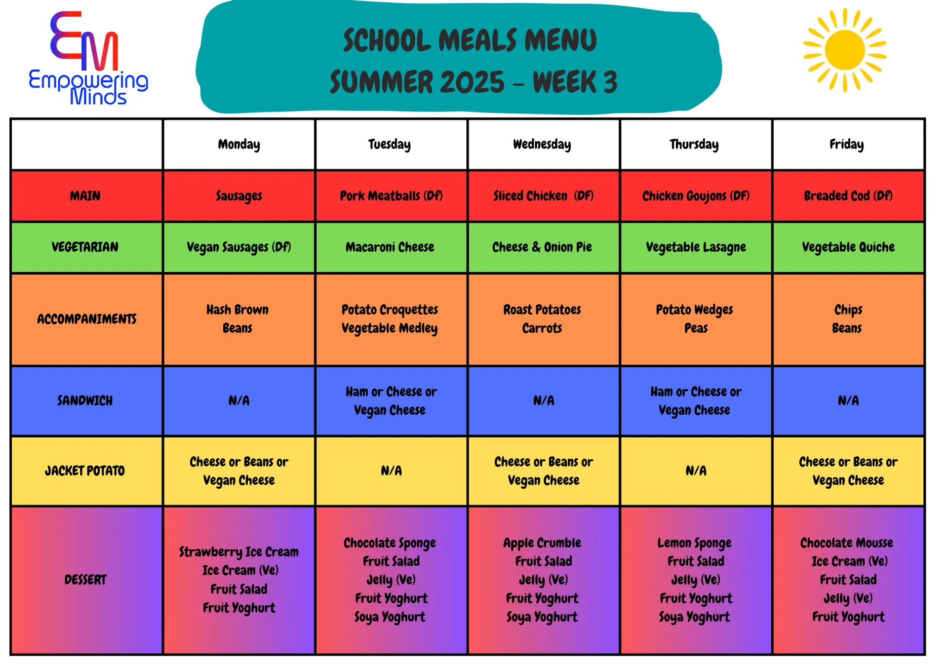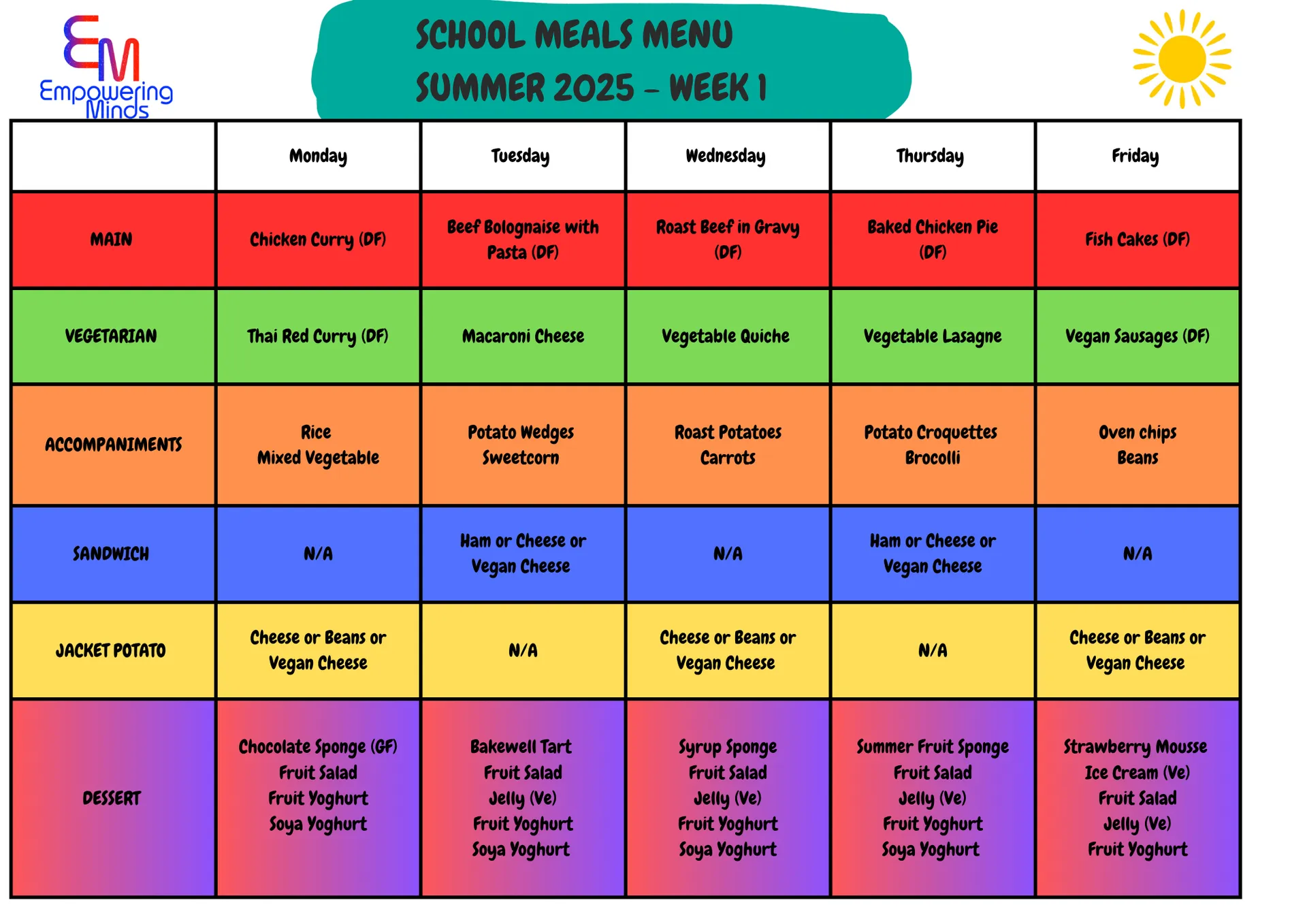 Payments for School Meals across Empowering Minds are made on School Grid. Parents can use School Grid to pre-order children's meal choice in advance.